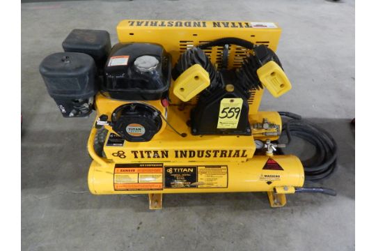 Titan commercial air compressor - 625 Bee Springs Titan Industrial Dual Tank Compressor - 450 Plymouth. Titan industrial gas air compressor 55hp for auction. Large online retirement auction 3 the finale approx.
