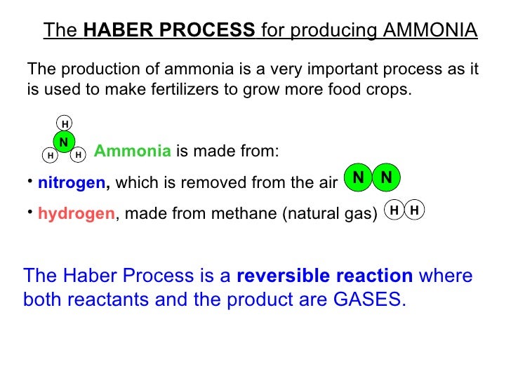 You must also be able to USE the ideas on other unfamiliar equilibria. The Haber process is important because prior to its discovery ammonia had been difficult to produce on an industrial scale and fertilizer generated from ammonia today is responsible for. Ammonia is made using the Haber process which involves a reversible reaction between nitrogen and hydrogen.